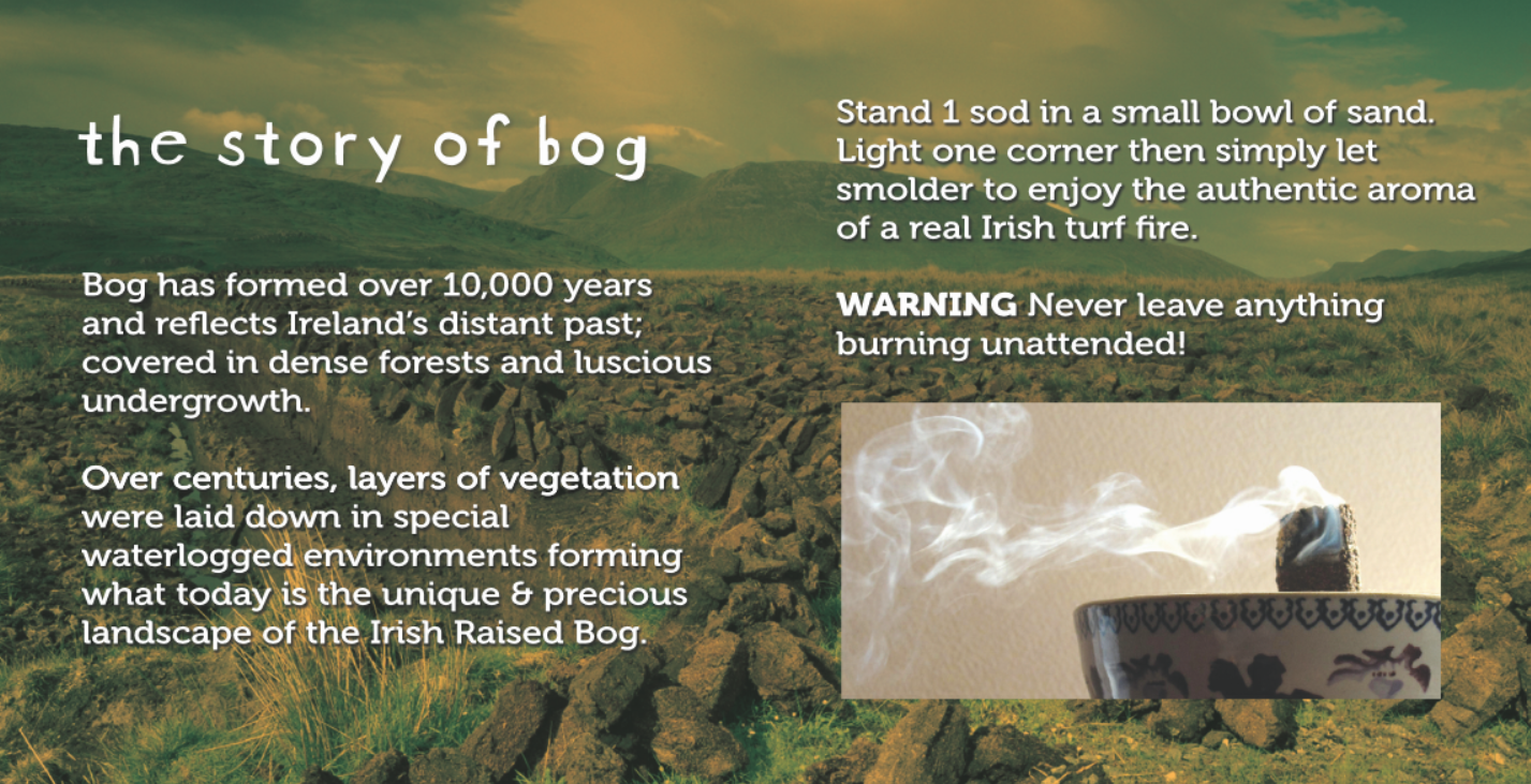 Irish Turf Incense is handmade in Ireland from real Irish bog. Enjoy the aroma of a real turf fire. Each one comes with The Story of Bog insert card.